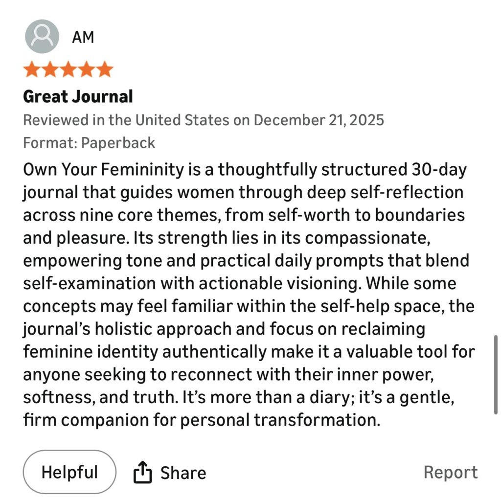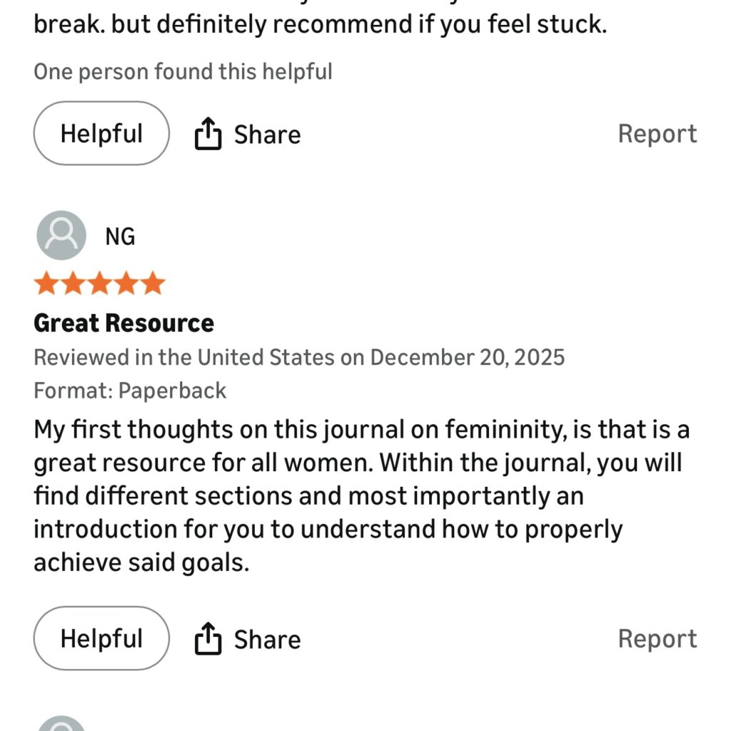 "My first thoughts on this journal on femininity, is that is a great resource for all women. Within the journal, you will find different sections and most importantly an introduction for you to understand how to properly achieve said...